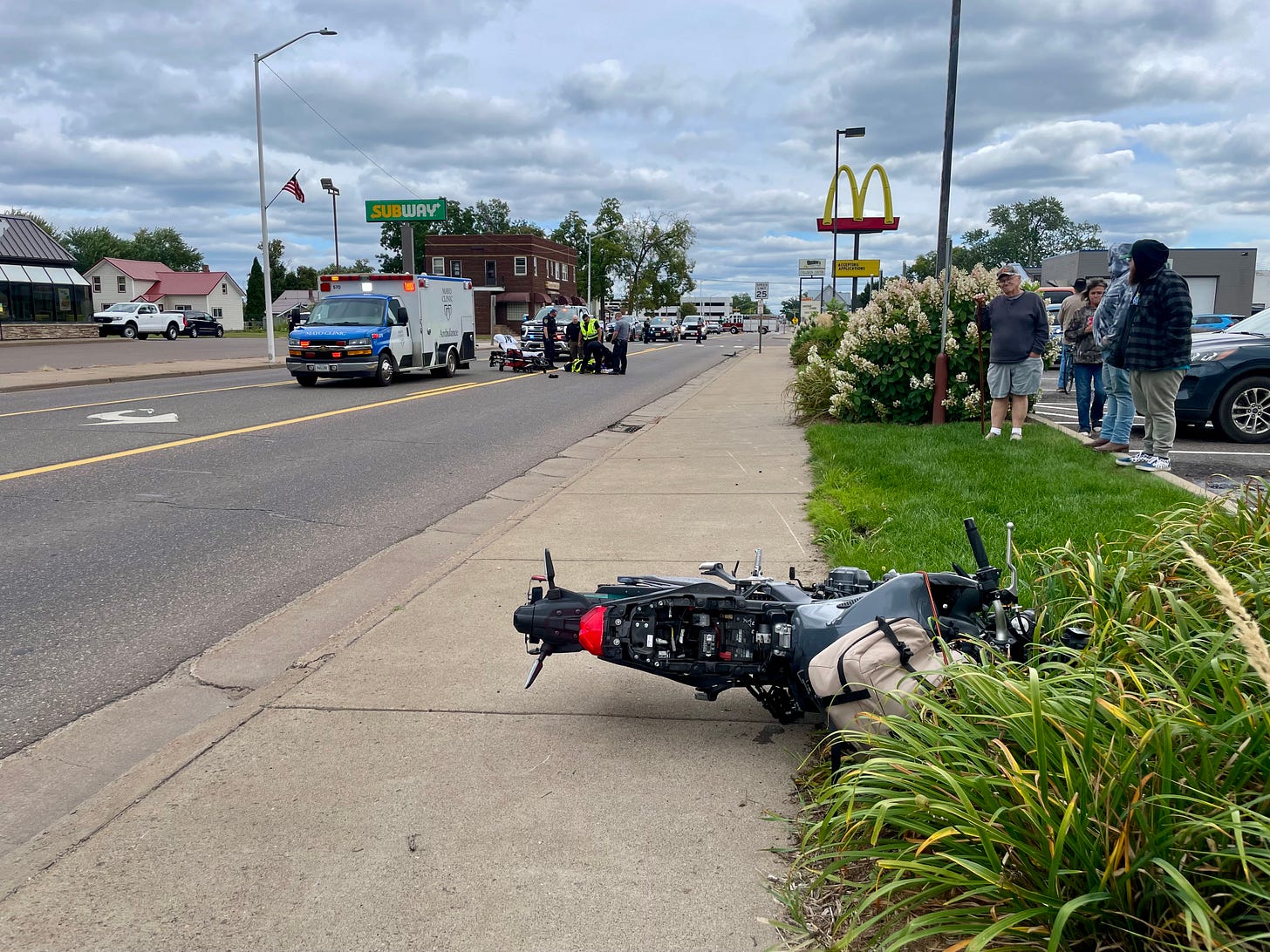 A Chicago man was seriously injured Thursday after crashing his motorcycle while fleeing from police in Barron, according to a report from the Barron Police Department. The rider, identified as Wayne Jackson, of Chicago, Illinois, was found lying on his side with injuries. He also told paramedics he had been traveling more than 100 mph at the time of the crash.